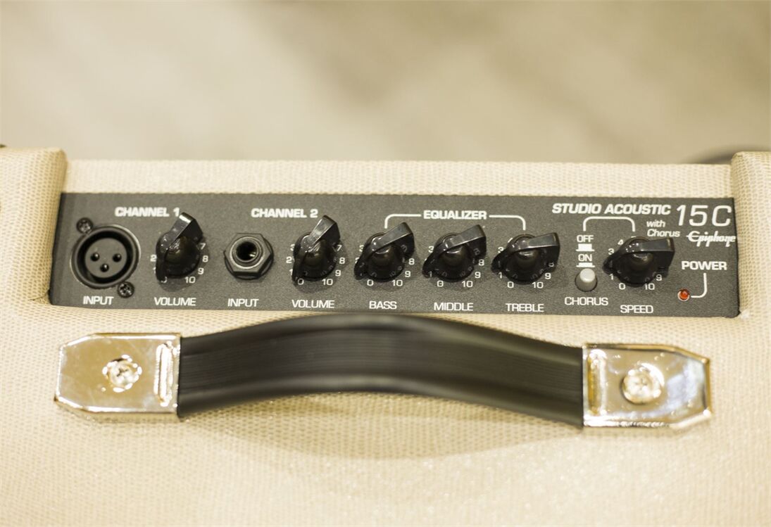 Ampli guitar Epiphone 15C được trang bị 2 cổng kết nối, 1 cổng dành cho canon Mic với nut điều chỉnh âm lượng riêng biệt, 1 cổng 6.5 dành cho đàn guitar, với cổng dành cho đàn guitar chúng ta có thể dễ dàng điều chỉnh ba thông số trên đó là :Bass ,middle, treble, đây là ba thông số cơ bản để điều chỉnh dải âm trầm, trung và cao trên chiếc amplifer. Ngoài ra cổng guitar cũng có nút volume riêng biệt. Với hệ thống điểu chỉnh tách biệt như vậy sẽ giúp bạn dễ dàng điều chỉnh theo sở thích của mình hơn với chiếc Ampli guitar Epiphone 15C.