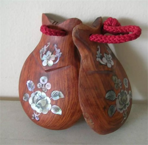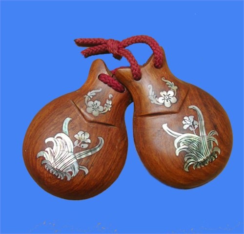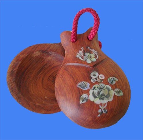Trong bộ đồ chơi âm nhạc dành cho bé không thể thiếu nhạc cụ castanet bằng gỗ. Đây là một loại nhạc cụ vô cùng dễ chơi và được thiết kế ngộ nghĩnh.