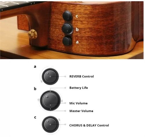 Pickup dưới yên ngựa Piezoelectric giúp thu lại rung động của dây đàn. Micro bên trong thùng đàn thu lại âm thanh của cây đàn, đồng thời cũng thu lại tiếng gõ thùng khi bạn chơi theo phong cách Fingerstyle.