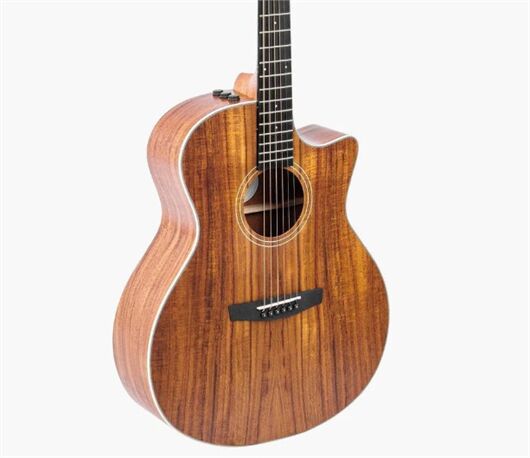 Mặt trước đàn được làm từ gỗ Koa nguyên tấm cho âm thanh ấm áp, vang xa, trong khi mặt sau và hông đàn sử dụng gỗ Koa laminate cho độ bền và tính ổn định cao.