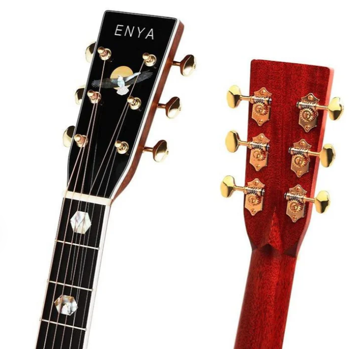 Đàn Guitar Enya T10S OM EQ AcousticPlus ENYA đã thay đổi phương pháp sản xuất đầu cần đàn thủ công truyền thống và áp dụng quy trình sản xuất khắc CNC tinh tế hơn.