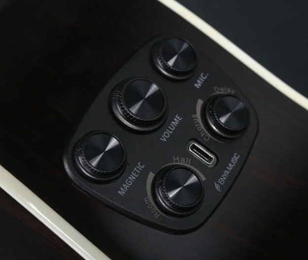Đàn Guitar Enya T10S OM EQ AcousticPlus Hệ thông AcousticPlus được trang bị bộ thu TransAcoustic chế độ kép (piezoelectric + micro) do Enya và Double Acoustics cùng phát triển. Pickup dưới yên ngựa Piezoelectric giúp thu lại rung động của dây đàn. Micro bên trong thùng đàn thu lại âm thanh của cây đàn, đồng thời cũng thu lại tiếng gõ thùng khi bạn chơi theo phong cách Fingerstyle. Công nghệ đột phá của AcousticPlus biến chính mặt sau thùng đàn thành loa và cho phép người chơi thêm hiệu ứng âm thanh (Delay, Reverb, Chorus...) từ chính cây đàn mà không cần thiết bị bên ngoài. AcousticPlus cung cấp một cách đơn giản nhưng hiệu quả để xử lý âm thanh tự nhiên, tạo ra trải nghiệm chơi độc đáo, thú vị, đầy cảm hứng và mới mẻ. Tích hợp Pin sử dụng cổng sạc Type-C
