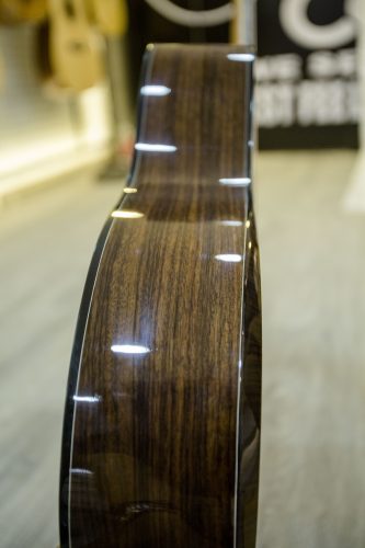 Với việc sử dụng các loại gỗ quý hiếm như gỗ hồng mộc, gỗ thông, gỗ hồng đào...đàn guitar này có một vẻ ngoài sang trọng và đẳng cấp. Ngoài ra, những nghệ nhân tài ba còn sử dụng các kỹ thuật đặc biệt để tạo ra những đường nét tinh xảo và tỉ mỉ trên cây guitar, tạo nên một sự hoàn hảo và độc đáo cho sản phẩm.