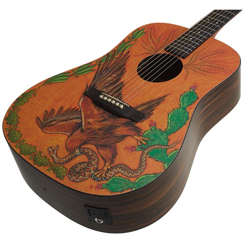 Martin DXMAE 30th Anniversary có mặt trên được vẽ những biểu tượng nổi bật của đất nước Mexico. Sự kết hợp giữ mặt trên là gỗ Vân sam Sitka Spruce, mặt lưng và mặt hông gỗ Macassar HPL, cần đàn gỗ bạch dương laminate nhiều lớp và phím đàn Richlite tạo nên một cây đàn âm thanh sáng, hiệu suất chơi cao hơn và vẻ ngoài nổi bật.