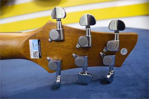 - Đầu Đàn & Cần Đàn Okoume: Cần đàn và đầu đàn được làm từ gỗ Okoume, nổi bật với độ nhẹ và tính linh hoạt, giúp người chơi dễ dàng di chuyển tay trên phím đàn và đảm bảo độ chắc chắn cho âm thanh ổn định.