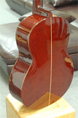 - Mặt đàn làm từ gỗ thông Sitka có độ bền cao, ít cong vênh và có khả năng cộng hưởng tốt. Lưng và hông đàn làm từ gỗ Hồng Đào Bắc Phi có độ cứng chắc cao, giúp đàn bền và khó bị cong vênh.