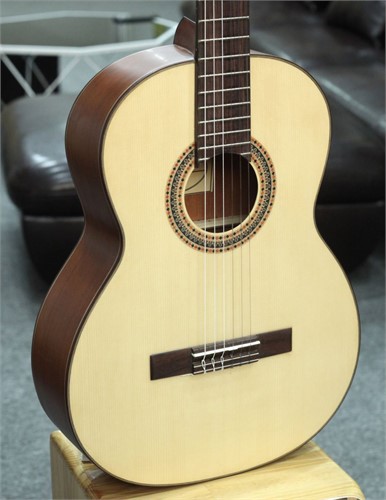 - Thân đàn được làm từ gỗ nguyên tấm, chất lượng cao, có độ bền cao. Mặt đàn được làm từ gỗ thông sitka, cedar, là loại gỗ phổ biến nhất để làm mặt đàn guitar classic. Gỗ thông có âm thanh sáng, vang xa, phù hợp với nhiều thể loại nhạc cổ điển. Lưng và hông đàn được làm bằng gỗ hồng đào, là loại gỗ có âm thanh ấm áp, sâu lắng. Kết hợp với mặt đàn bằng gỗ thông, đàn mang lại âm thanh ấm áp, vang xa và cân bằng.