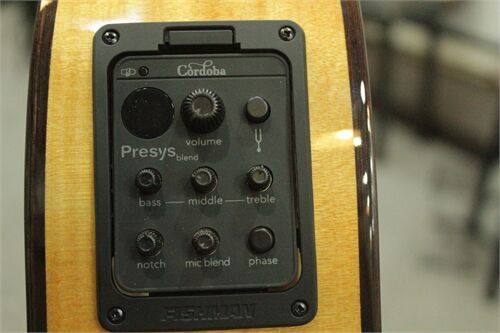 - Đàn Guitar Classic Cordoba GK STUDIO được tích hợp sẵn bộ EQ Fishman Presys Blend, giúp người chơi có thể điều chỉnh âm thanh của đàn theo ý muốn.