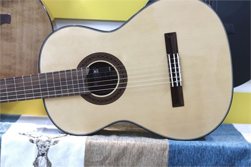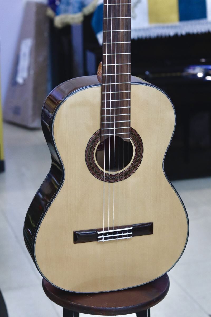 Với mặt Top được làm bằng gỗ Spruce nguyên tấm, lưng và hông đàn được làm bằng gỗ Indian Rosewood sẽ cho tiếng đàn ấm và có độ vang ngân tốt.
