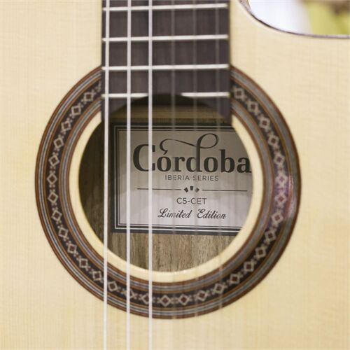Cordoba C5CET gây ấn tượng với những loại gỗ giá trị nhất của một cây đàn guitar: mặt là gỗ thịt sitka, lưng và hông gỗ maple và bàn phím là Rosewood. Gỗ sitka (Tuyết Tùng) là loại gỗ lý tưởng cho một người nghệ sỹ biểu diễn trên sân khấu mà âm thanh vẫn có thể đạt tới mức rõ ràng nhất tới tận người đứng dưới cùng trong khán phòng. Loại gỗ này hợp với những bản độc tấu cổ điển.