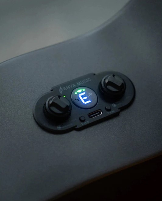 Enya Double SO AcousticPlus cũng tích hợp màn hình tuner giúp lên dây đàn. Pin sử dụng cổng sạc Type-C có thời gian sử dụng lên đến 8 giờ.