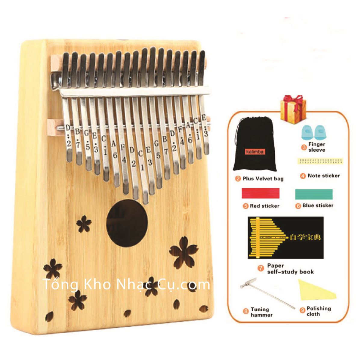 - Đàn Kalimba Yael 17 Phím Y17B-F ( Trúc hoa-Mbira Thumb Finger Piano 17 Keys- Kèm Sticker dán note, Decal xanh đỏ, Búa chỉnh âm, Túi đựng, Khăn lau, Sách học - Giúp cảm thụ âm nhạc tốt)