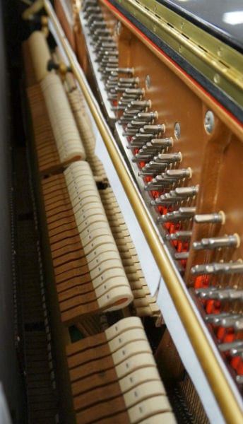 Hàng hoạt các chốt pin dây đàn bằng thép còn rất mới và dây đàn cũng được làm bằng thép cường độ cao, không bị gỉ sét mang đến âm vang lớn và hoạt động bền bỉ.