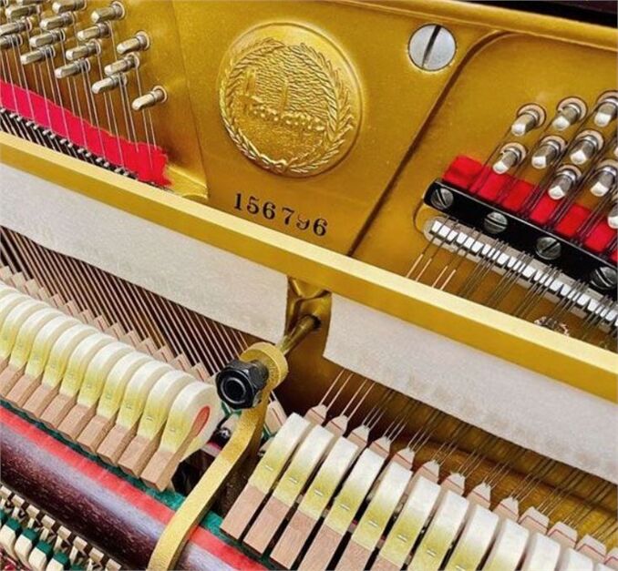 Thêm vào đó là lớp sơn phủ bóng vừa bảo vệ cho lớp gỗ bên trong lại vừa mang đến độ sáng, bắt mắt cho cây đàn. Thành gỗ dày cộng thêm khung đàn đúc kim loại bằng khuôn cát cứng cáp mang đến độ chịu lực cũng như kéo dài tuổi thọ của đàn.