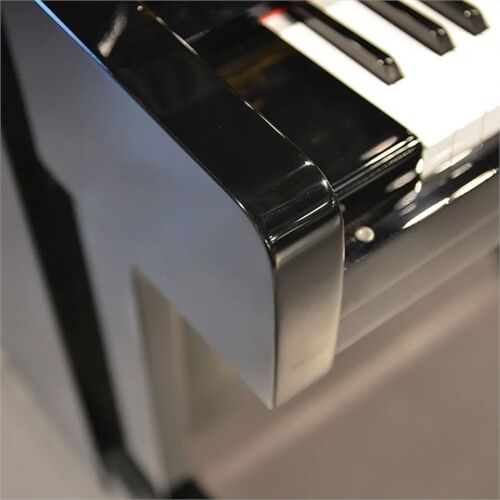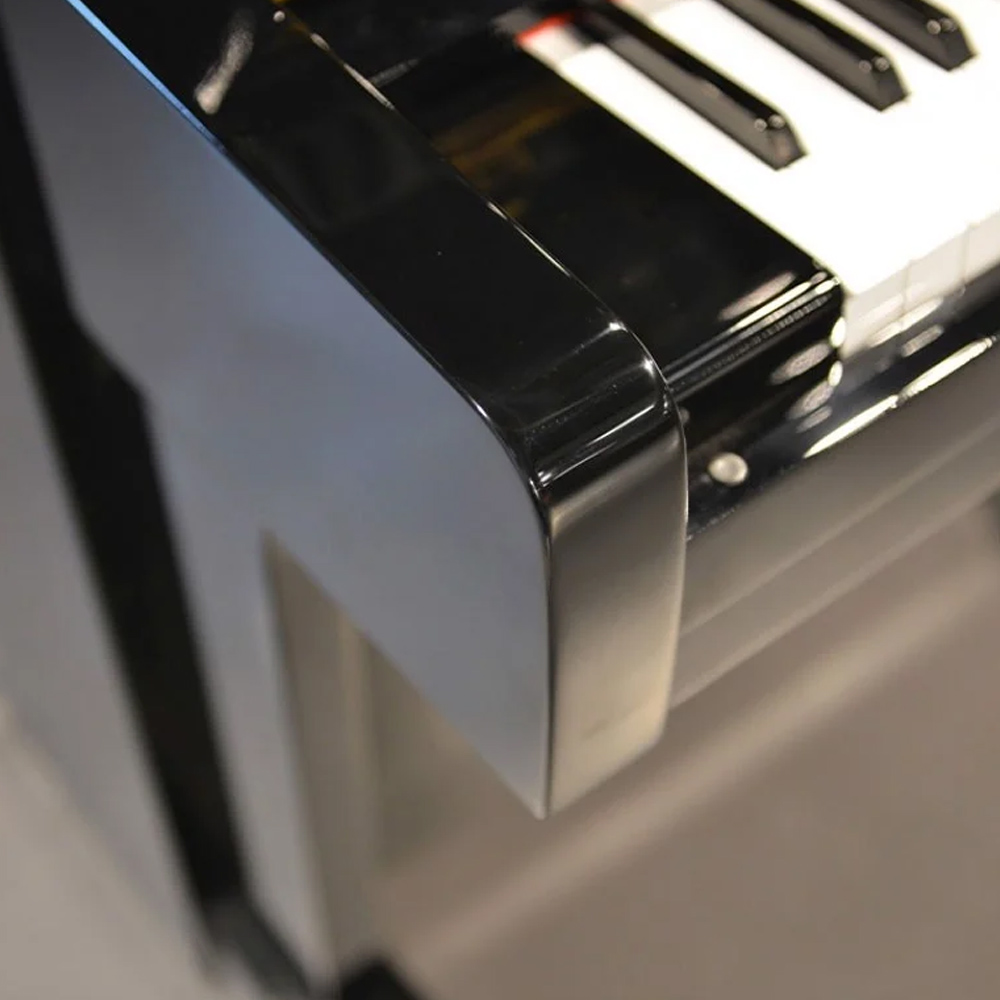 Thùng đàn của Yamaha U1E được tạo nên từ gỗ lâu năm của Nhật Bản, bên ngoài được phủ lên một lớp sơn cao cấp màu đen bóng tạo nên sự sang trọng qua năm tháng.