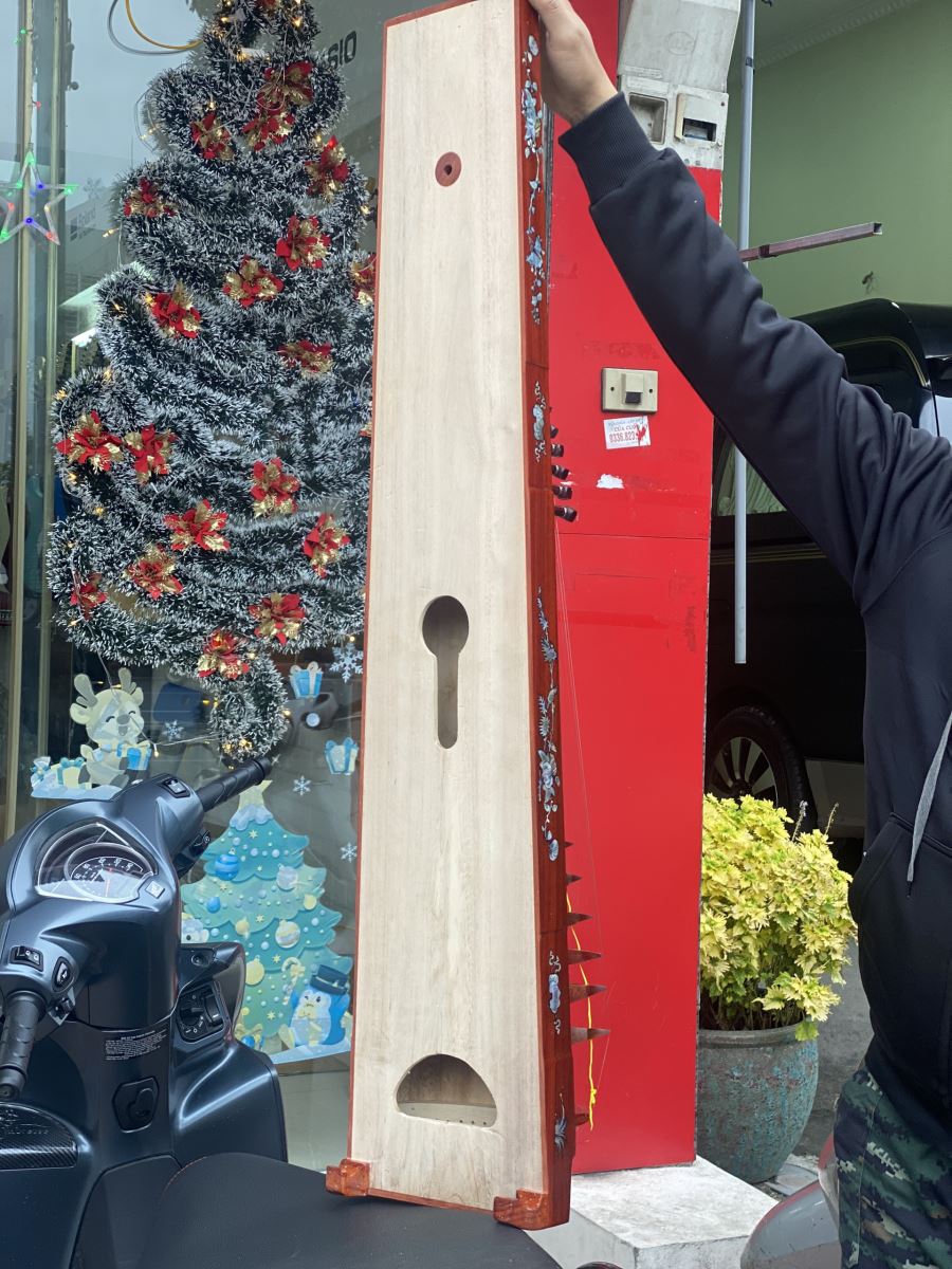 | Chất liệu Mặt đàn | Gỗ hương nguyên tấm Chất liệu đáy đàn (lưng đàn) : Gỗ hương hoặc gỗ cứng tương đương Kích thước: ~ 104cm x 22cm x 8cm (có thể thay đổi theo mẫu) Số Dây : 17 |