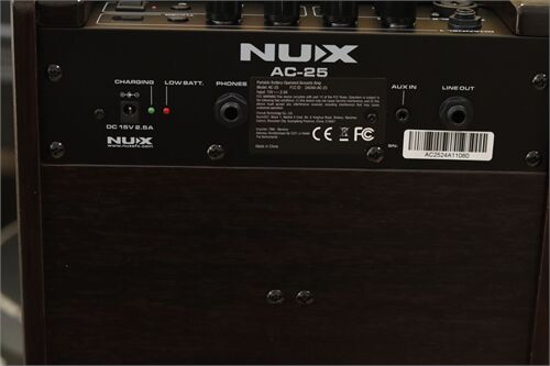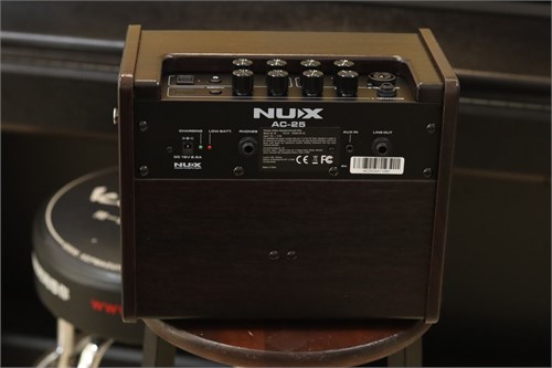 NUX AC-25 là Acoustic Amplifier 2 kênh có tích hợp pin sạc có thời lượng sử dụng lên đến 4 giờ, trang bị của loa 6.5”, bộ Preamp giả lập được nhiều kiểu tiếng, có effect cần thiết cho guitar thùng Reverb. Ngoài ra, NUX AC-25 còn có Bluetooth để phát nhạc, Drum Machine để tập luyện.