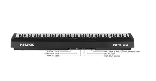 NPK-20 cũng cung cấp các cổng kết nối Aux In, Line Out (L/MONO, R), USB MIDI, 2 đầu ra tai nghe, cổng cắm Damper Pedal và cổng cắm Pedal-Unit.