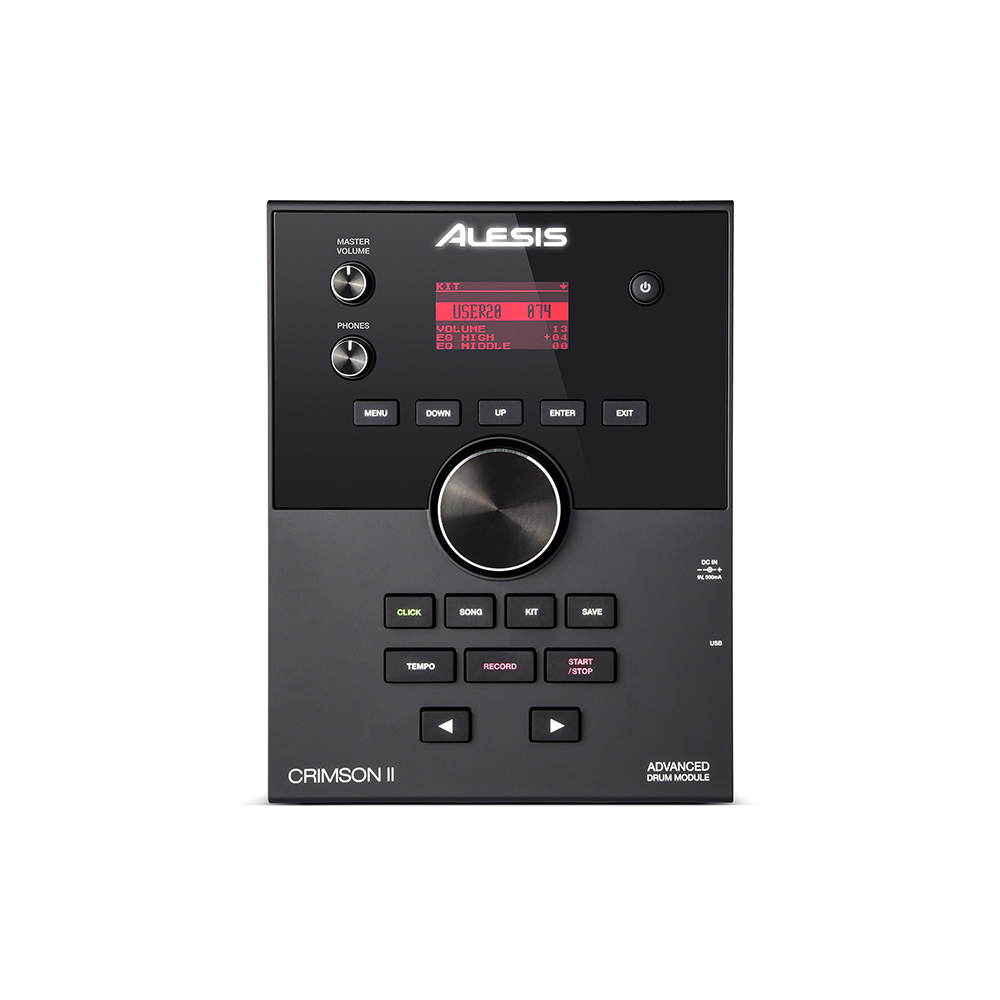 Alesis Crimson II 5-Piece bao gồm trống bass 8", trống snare mặt đôi 12", hai trống tom mặt kép 8" và 1 floor tom mặt kép 10", mang đến cho bạn sự linh hoạt âm thanh vượt trội. Ngoài ra, Crimson II còn có hi-hat 12" cùng pedal, hai cymbal trung 12" và lá cymbal lớn 14". Crimson II đi kèm có 74 chế độ trống (54 preset + 20 chế độ tuỳ chỉnh) với hơn 671 âm thanh và 120 track chơi kèm. Có một máy đánh nhịp, đầu thu thời gian thực, và input 0,3cm dành để chơi cùng track bạn yêu thích. Cặp stereo output 0,6cm sẽ đưa âm thanh của bạn đến amp hoặc hệ thống PA, và bạn sẽ có output dành cho headphone để luyện tập riêng, và sử dụng USB-MIDI output để dẫn kết nối nhạc cụ ảo